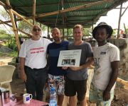 De izquierda a derecha, el construcctor del pozo en Etiopia, el padre Ángel Valdivia, Jesús Hernández y el padre David Escrich